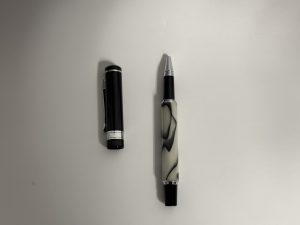The Zippo Oyster Marble ballpoint pen has a snap on cap. Solid brass housing makes this a very sturdy writing instrument. Set in black/marble with chrome accents. Zippo logo on clip.